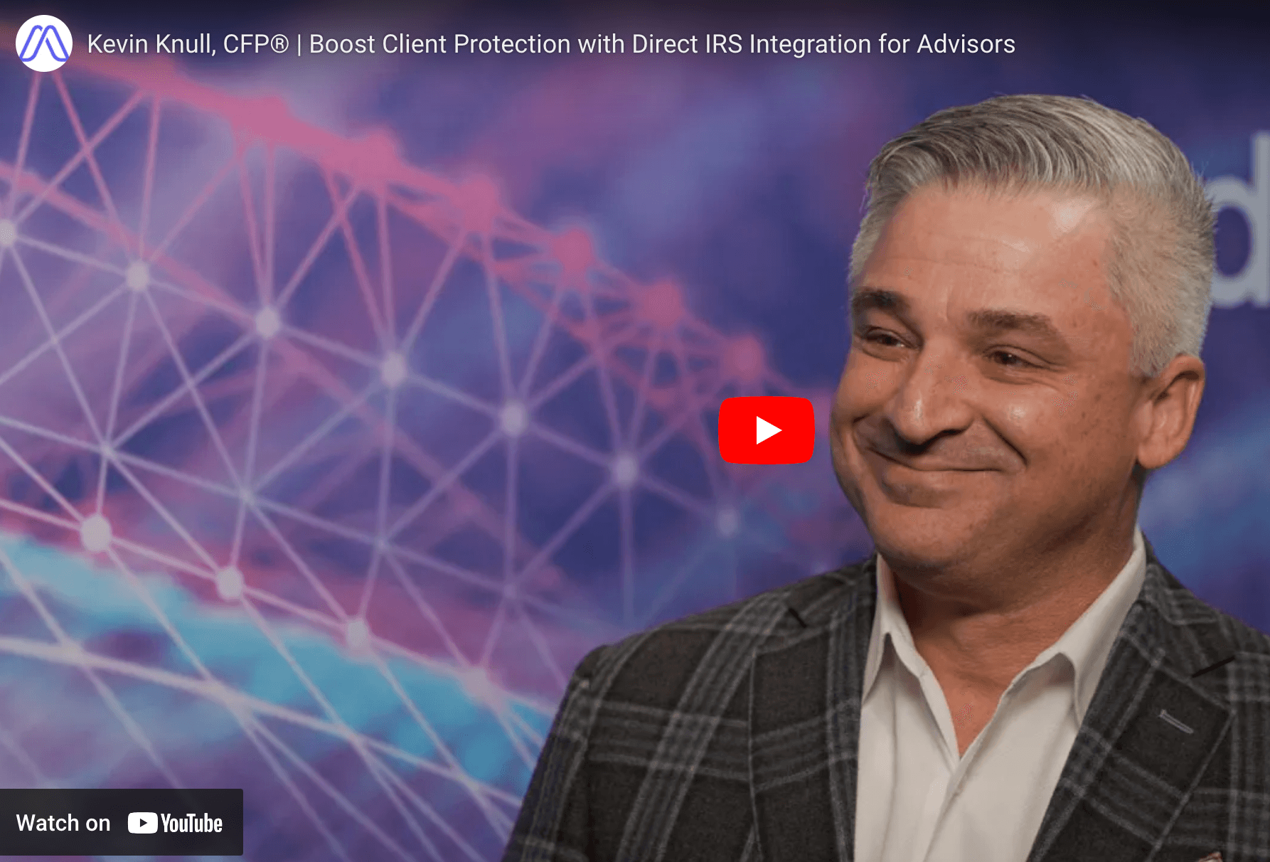 Kevin Knull, CFP® was interviewed by Advisorpedia at the 2024 Nitrogen Fearless Investing Summit, discussing how financial advisors can boost client protection with TaxStatus’ direct, two-way IRS integration. Kevin also discusses the 2024 NPD breach and shares a tax fraud horror story that advisors can help prevent.