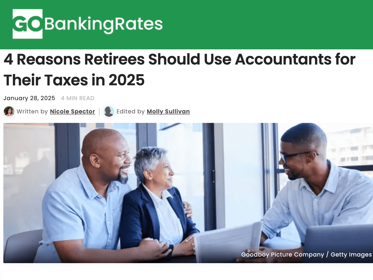 Kevin Knull, CFP® was quoted in this article from GOBankingRates discussing why retirees should use accountants for their taxes in 2025: "CPAs have access to technology-driven solutions that integrate directly with the IRS to monitor a retiree’s account activity in real time. CPAs also play a crucial role in helping retirees avoid costly mistakes in filing taxes, and in finding additional financial tax planning opportunities."