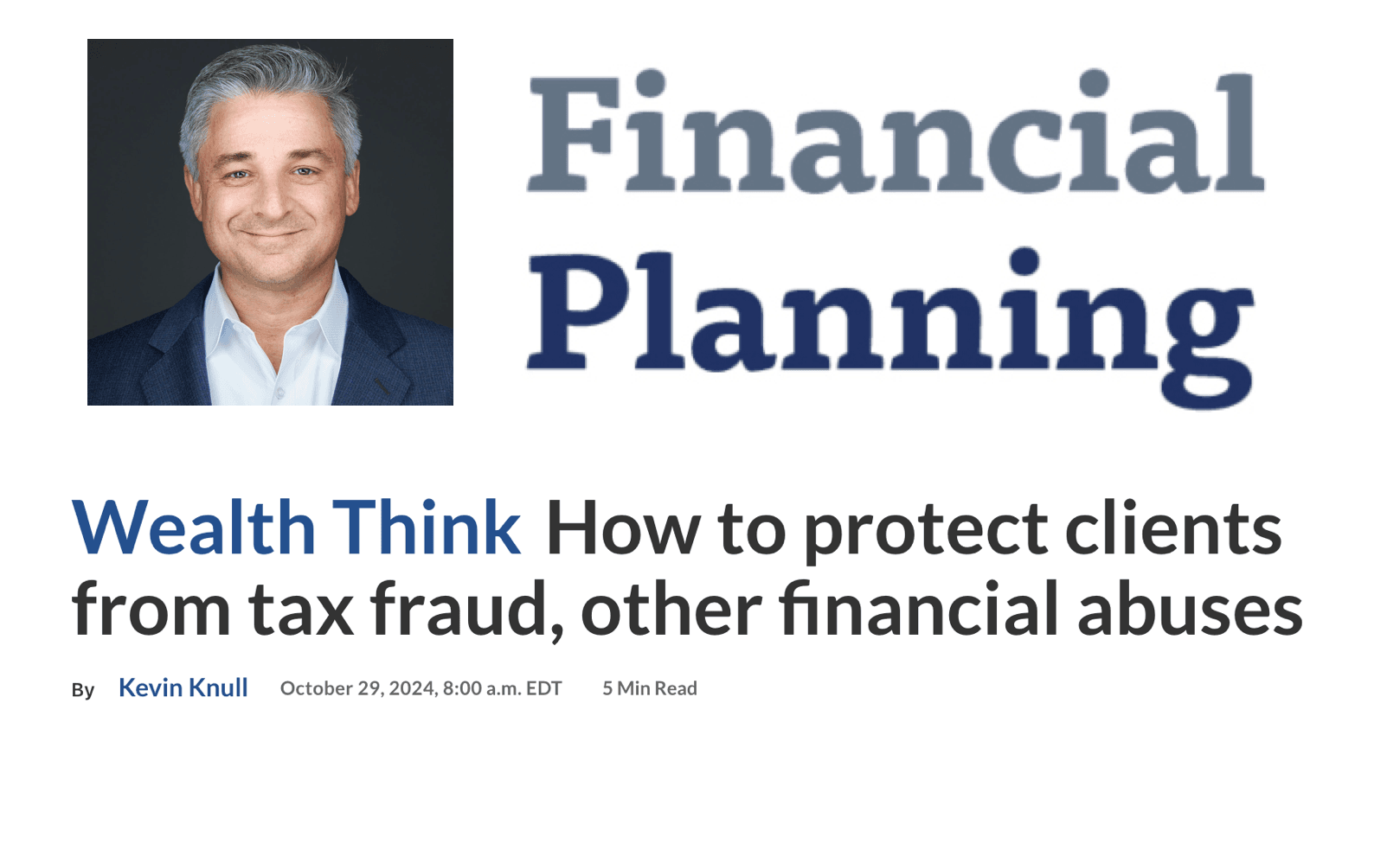 Bylined Article by Kevin Knull, CFP® in Financial Planning: How to Protect Clients from Tax Fraud, Other Financial Abuses